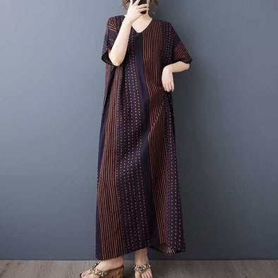 大人ロングワンピース ストライプ エスニック おしゃれワンピース