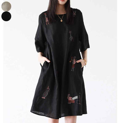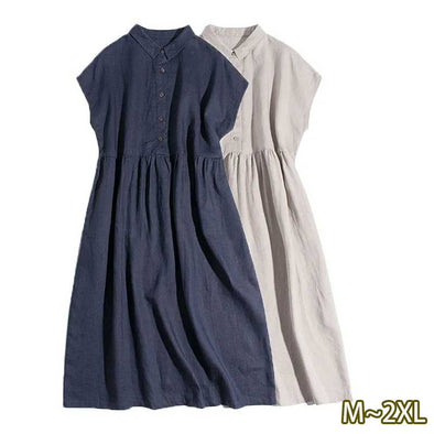 再販 人気【S~5XL】綿麻 おしゃれ 楽ちん チュニックワンピース 大人 ロングトップス