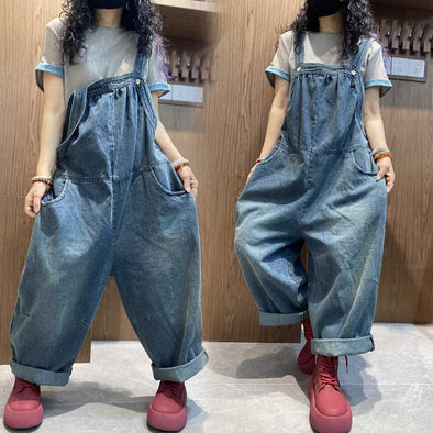 【数量限定】季節問わず 大人かわいい ウォッシュ加工 ワイド風 デニムサロペットパンツ おしゃれ デニムパンツ