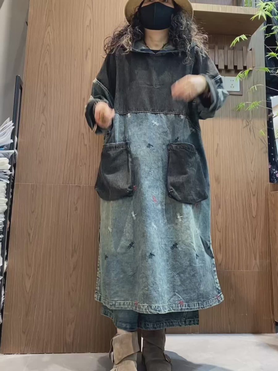 【人気新作】フーデッドデザイン オーバーサイズ 切替 とんぼ刺繍 大人かわいい デニムワンピース【独占販売】 – Jojormaru