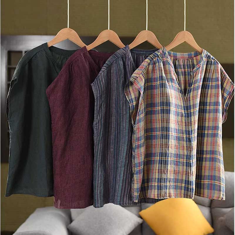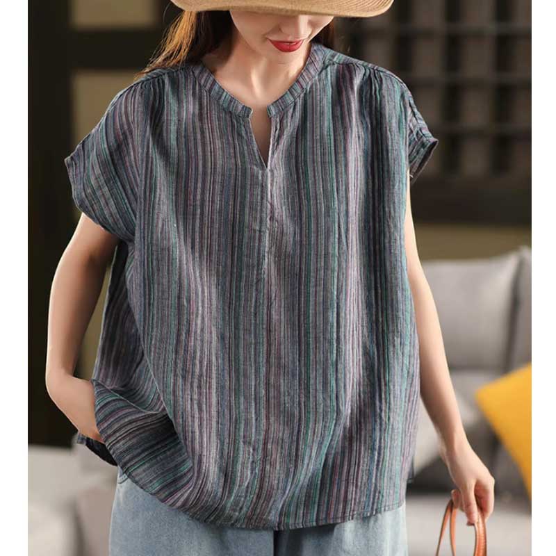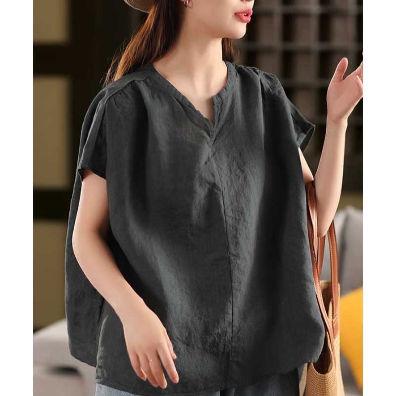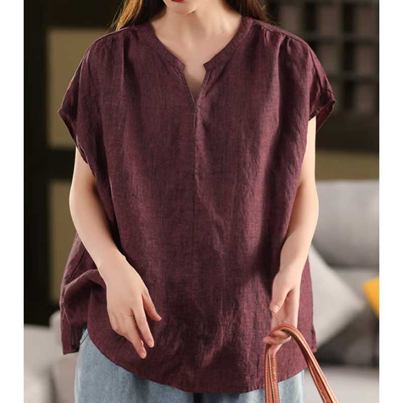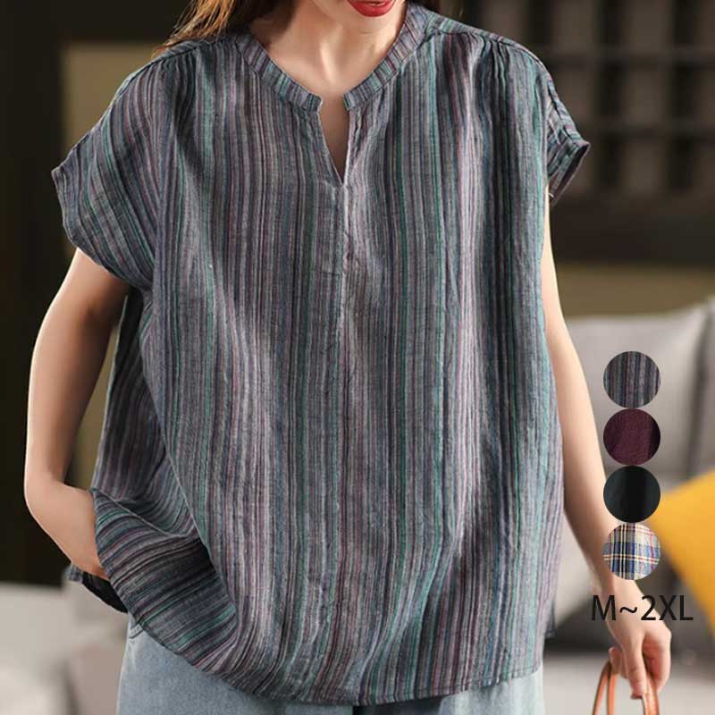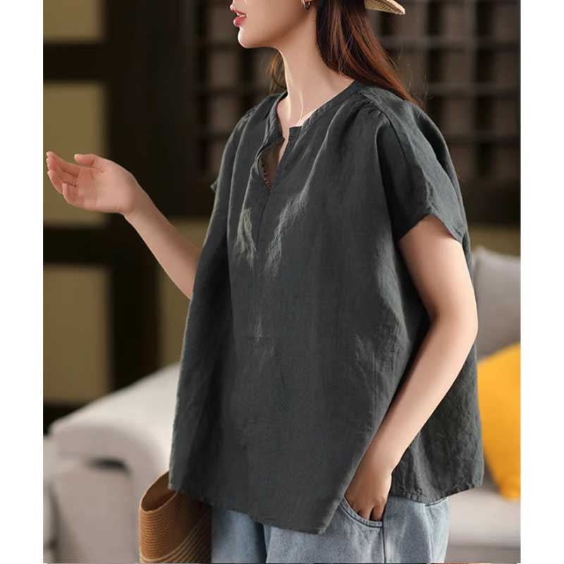 大人かわいい 綿麻 夏 スリットネック シャツ – Jojormaru