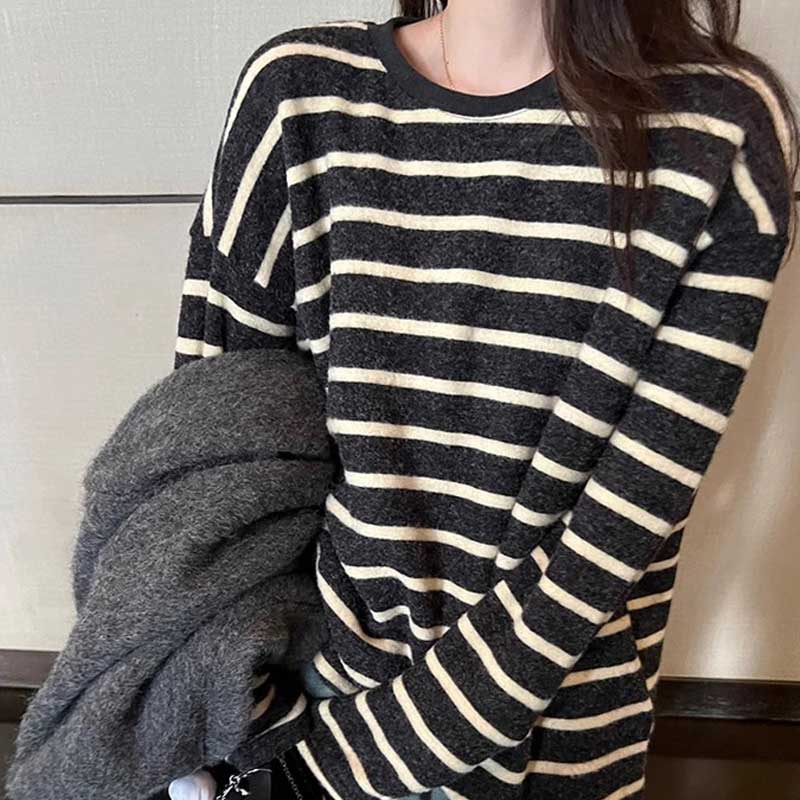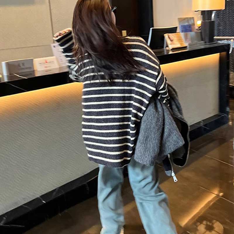 ストライプ柄 もこもこ 暖かい 長袖 セーター – Jojormaru