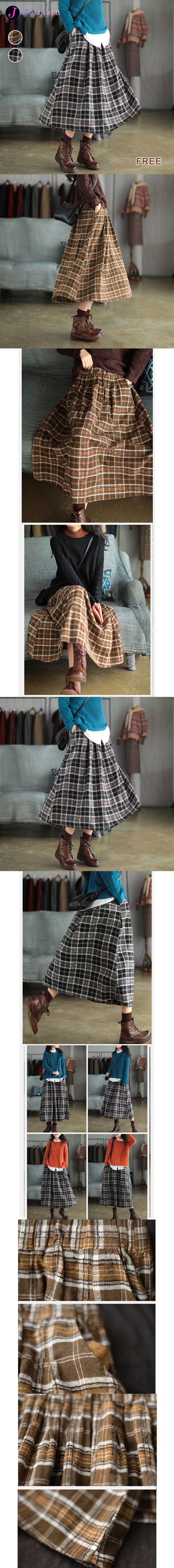 韓国Chic チェック柄 Aライン ロング スカート – Jojormaru
