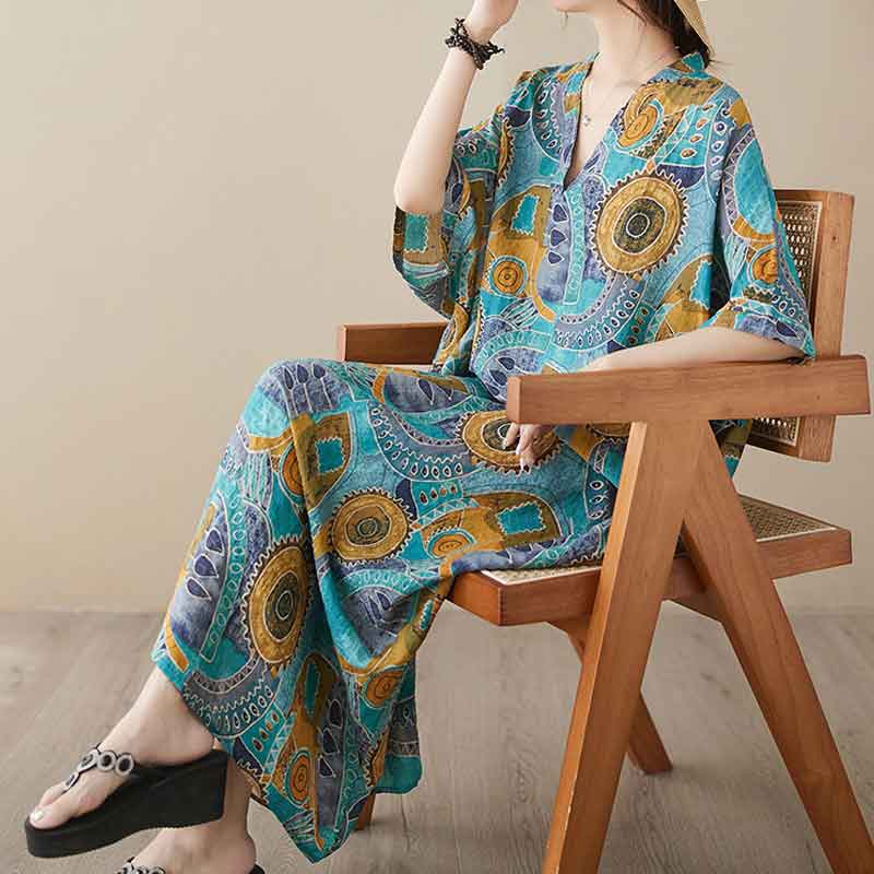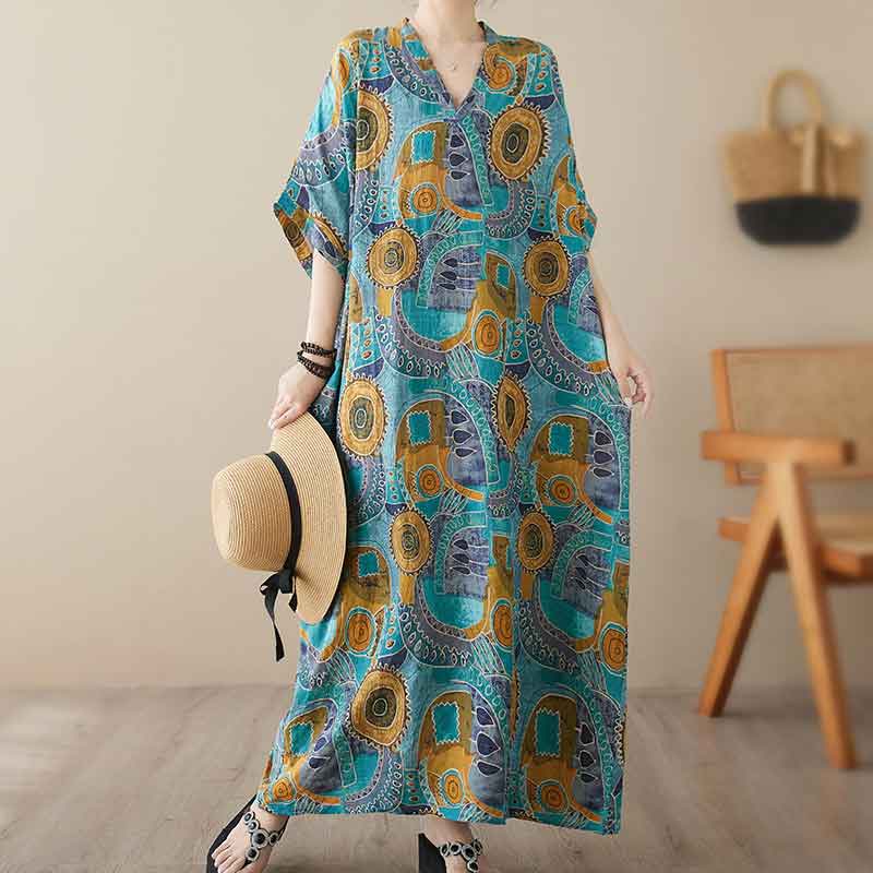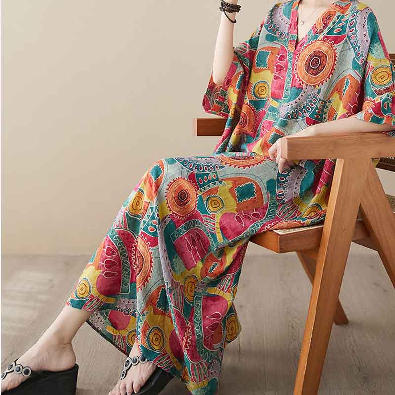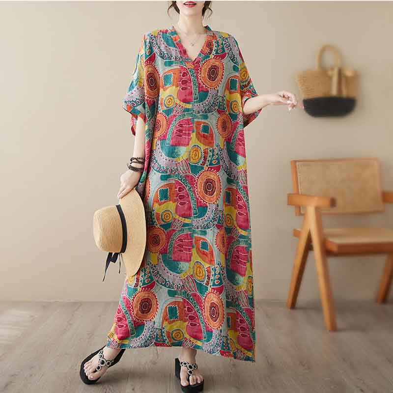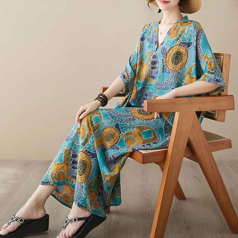 ボタニカル ロング丈 体型カバー 夏ワンピース – Jojormaru