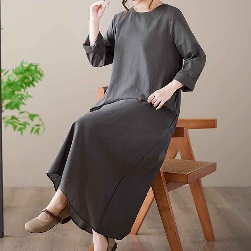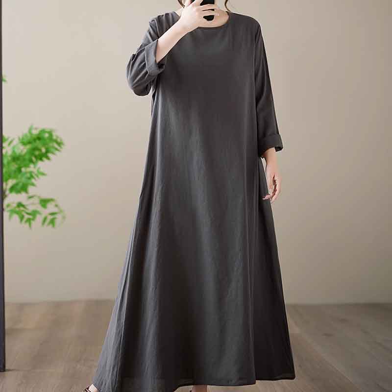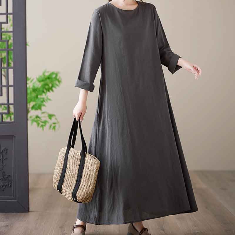 シンプルカジュアル 無地 秋コーデ ロングワンピース – Jojormaru