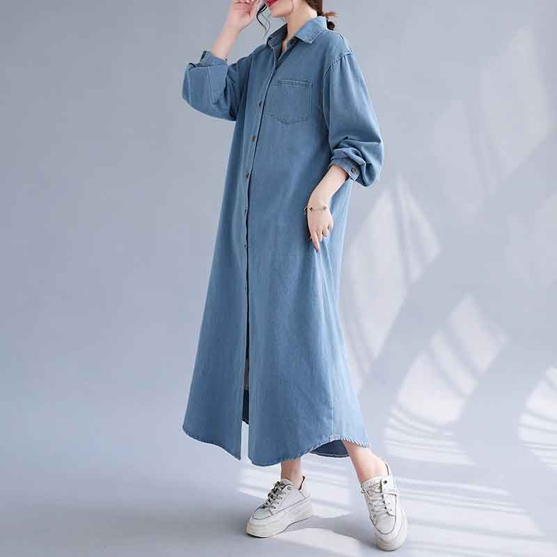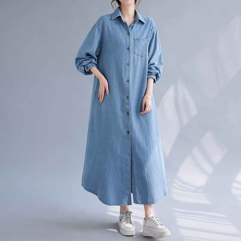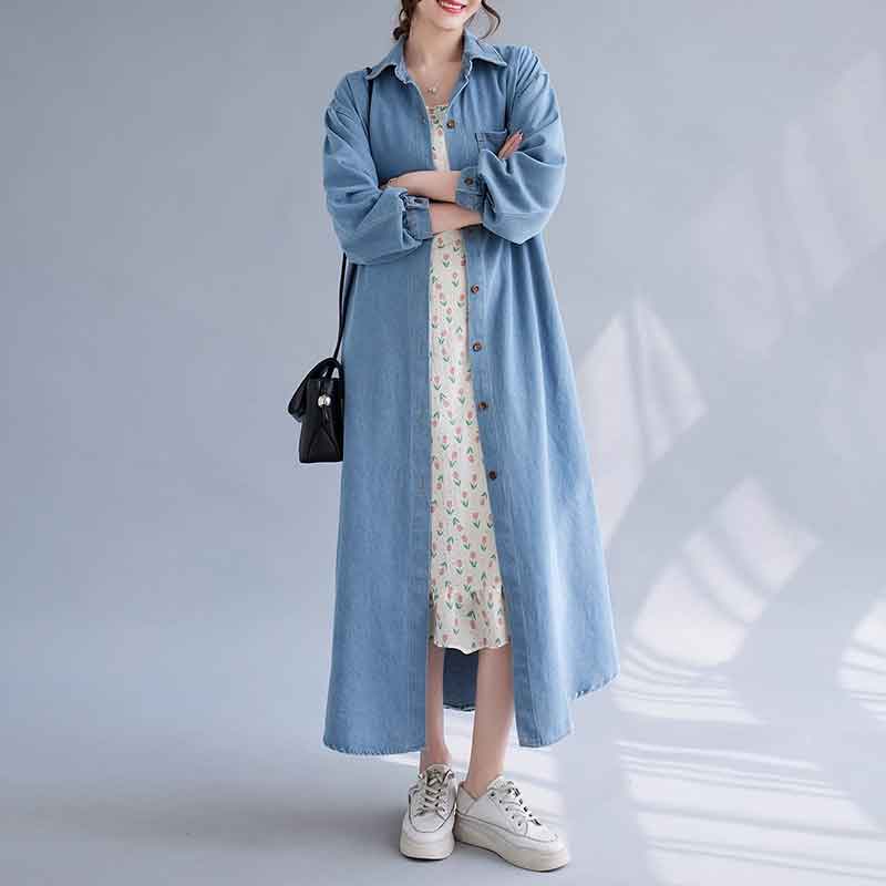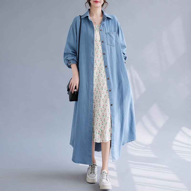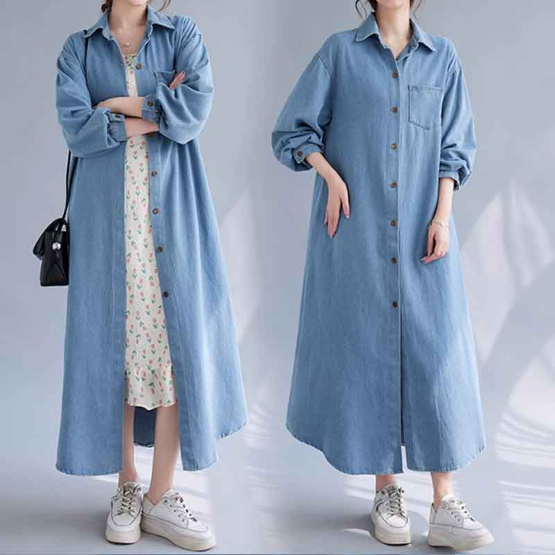秋コーデ 薄手デニムロングアウター 羽織 ロング丈  – Jojormaru