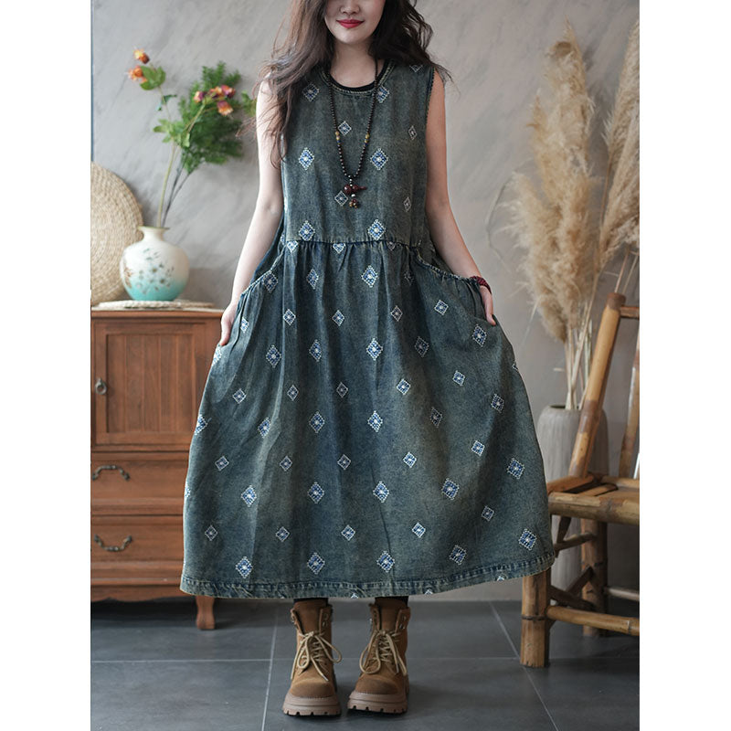 人気新作 刺繍デザイン Aライン ロングデニムワンピース バッグ付き 独占販売 – Jojormaru