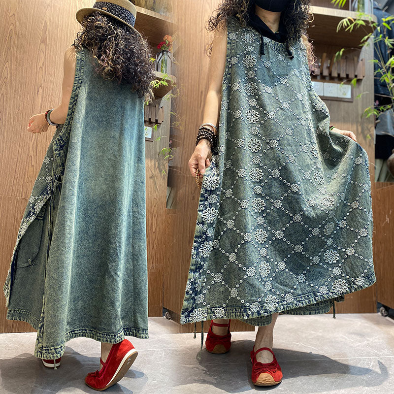 【待望の一着】花柄刺繍 かわいい おしゃれ デニムワンピース 【独占販売、数量限定】 – Jojormaru