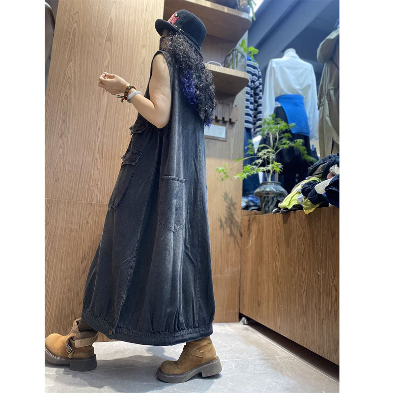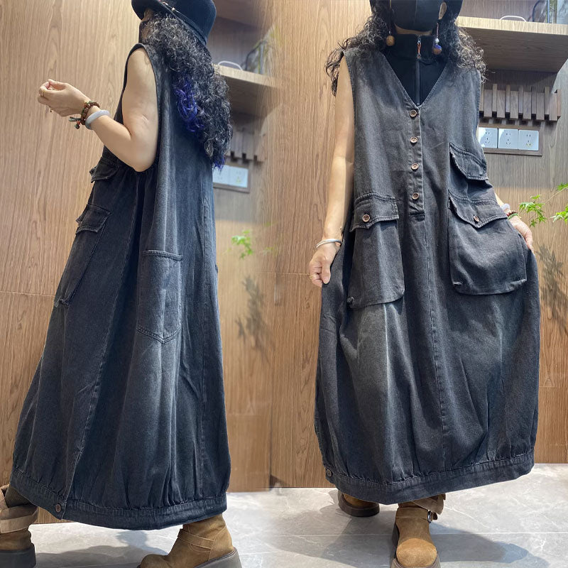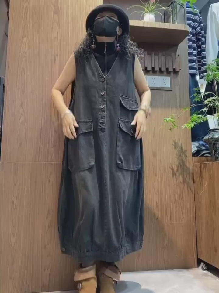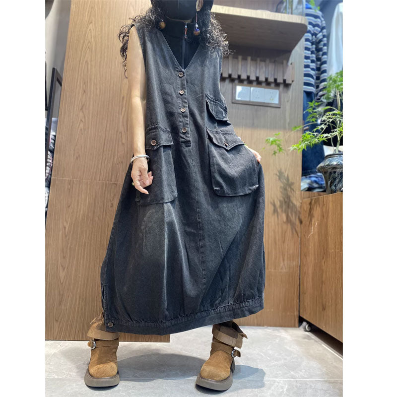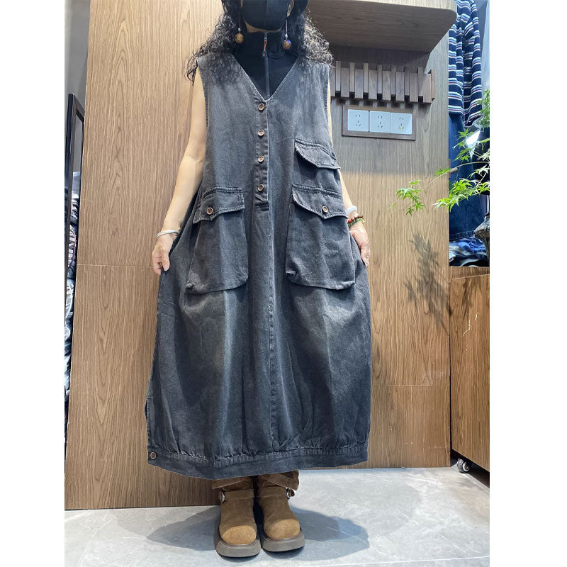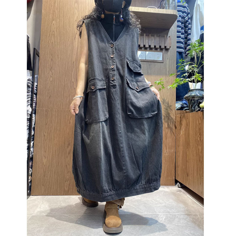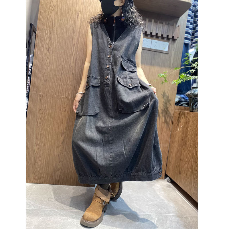 【2026新作】深めvネック ベーシックデザイン ロングデニムワンピース – Jojormaru