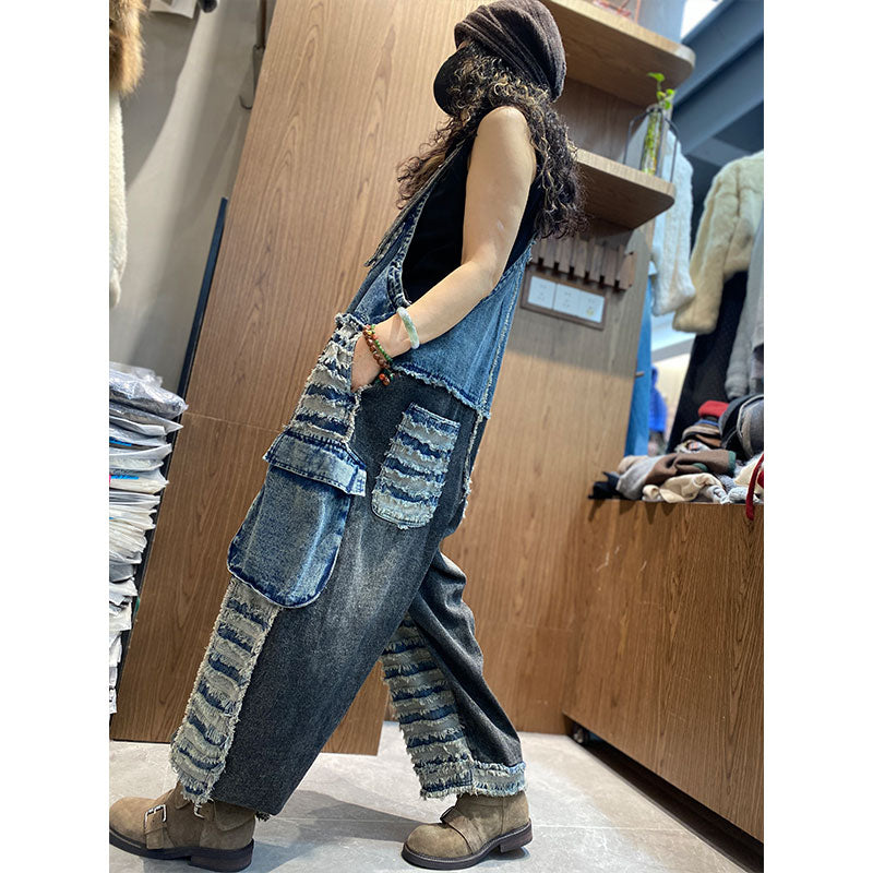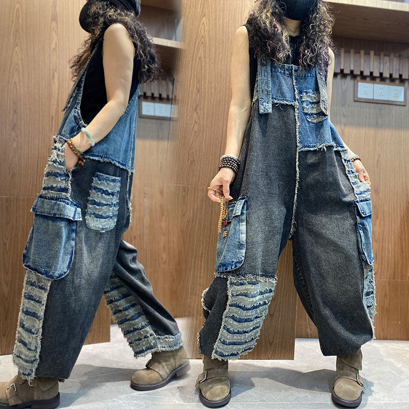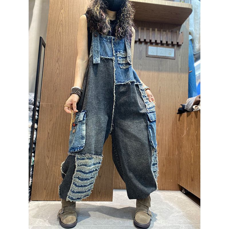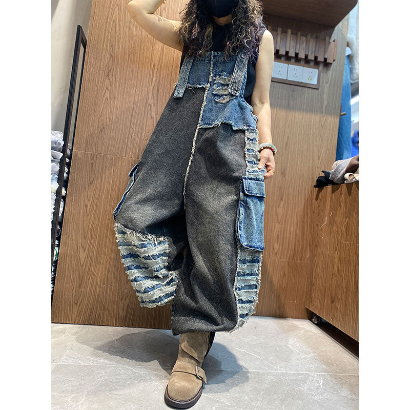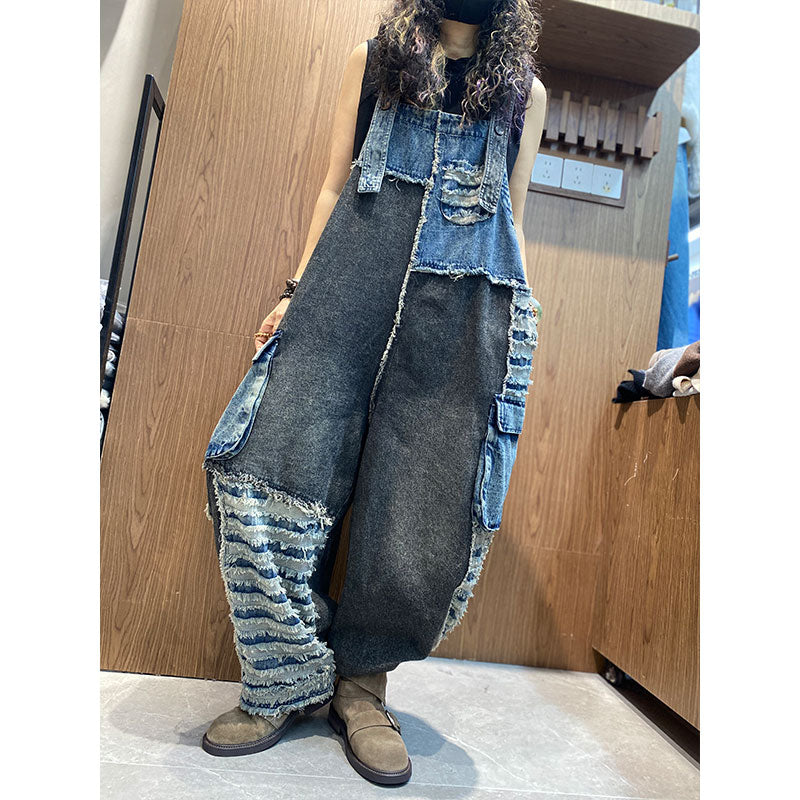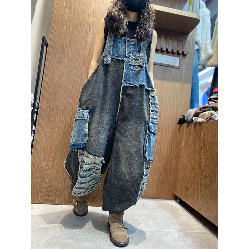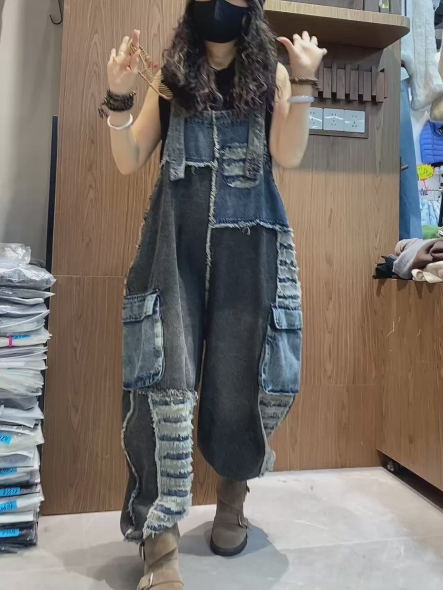 【2026新作】ダメージ ワイドバルーン風デニムサロペット 切り替え配色 サロペット【独占販売、送料無料】 – Jojormaru