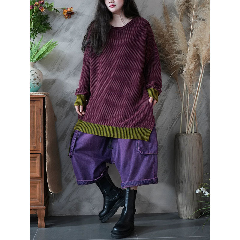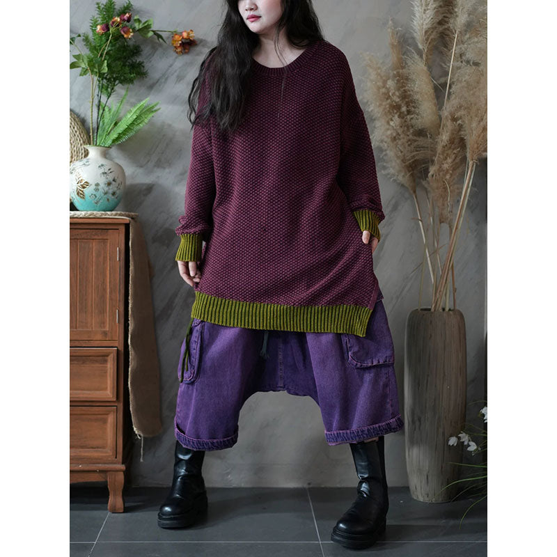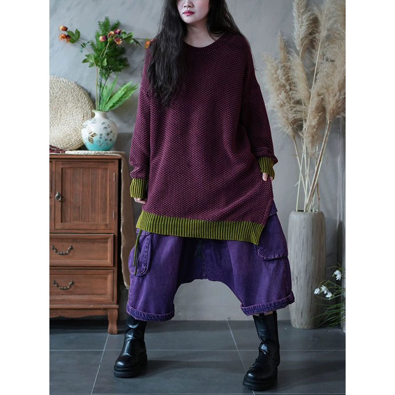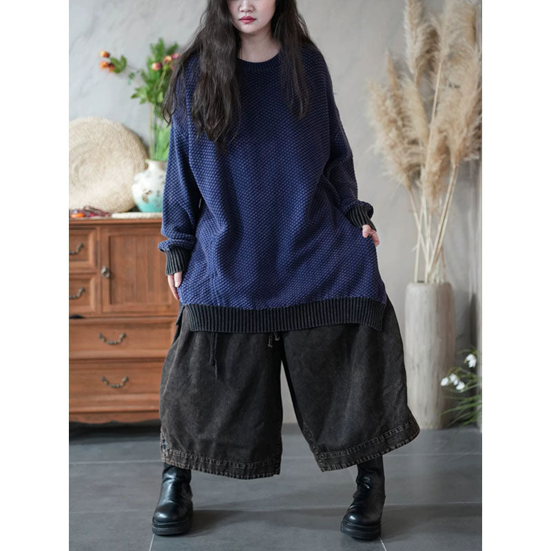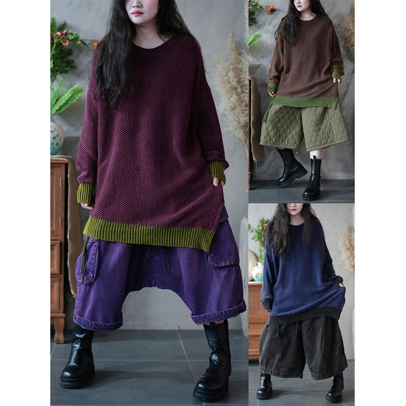 レディースウールセーター 切替 アシメ裾 オーバーサイズ セーター 高品質 – Jojormaru