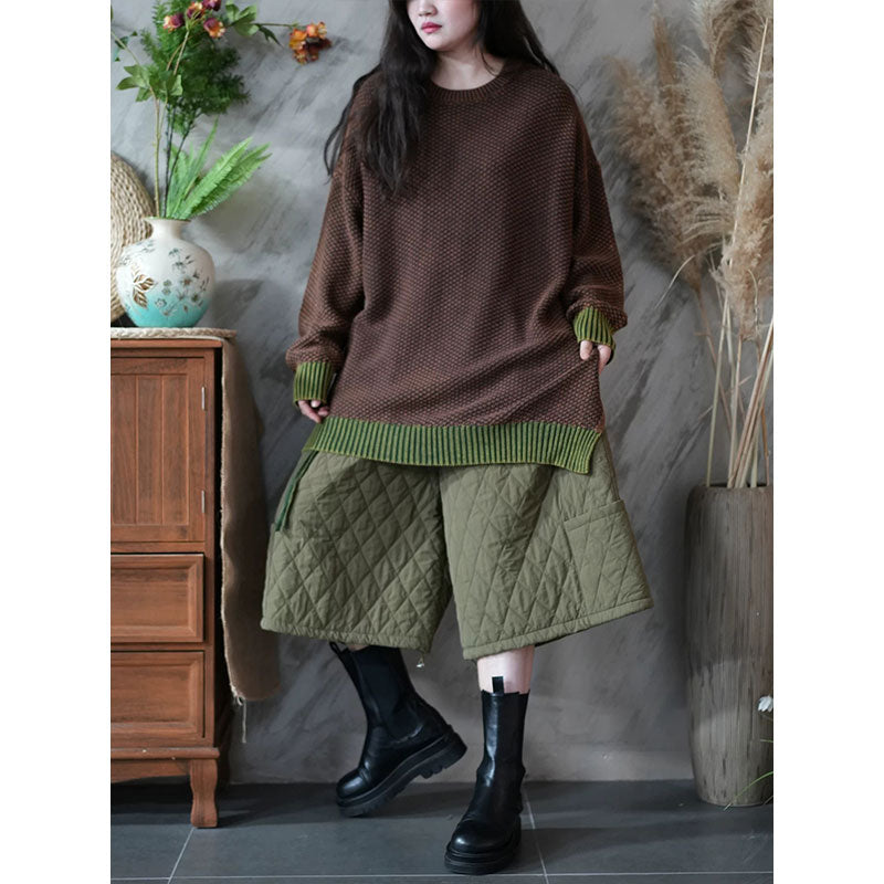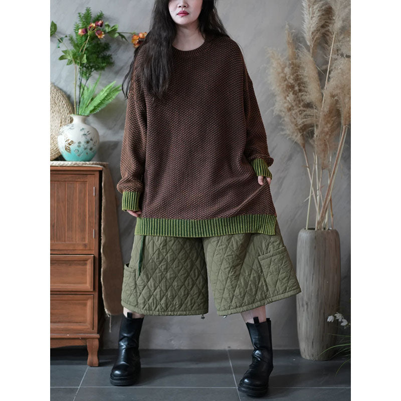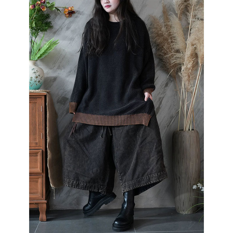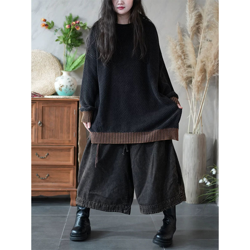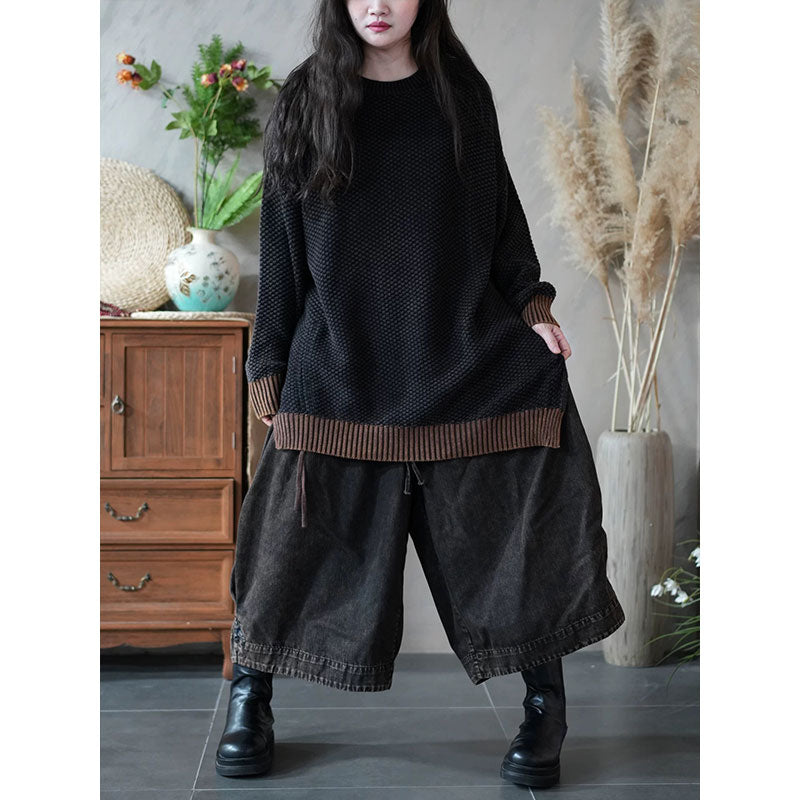 レディースウールセーター 切替 アシメ裾 オーバーサイズ セーター 高品質 – Jojormaru