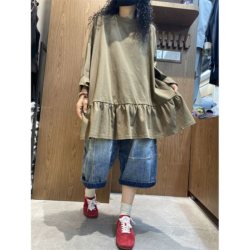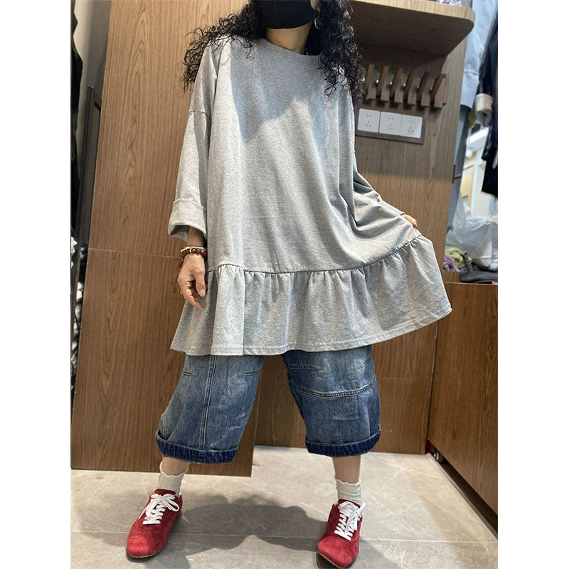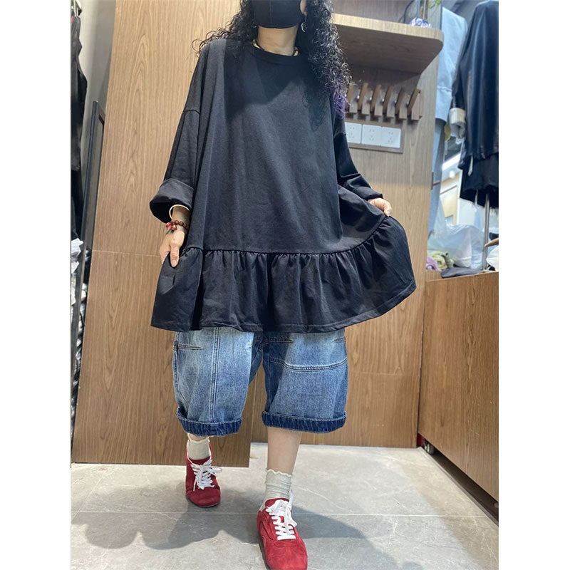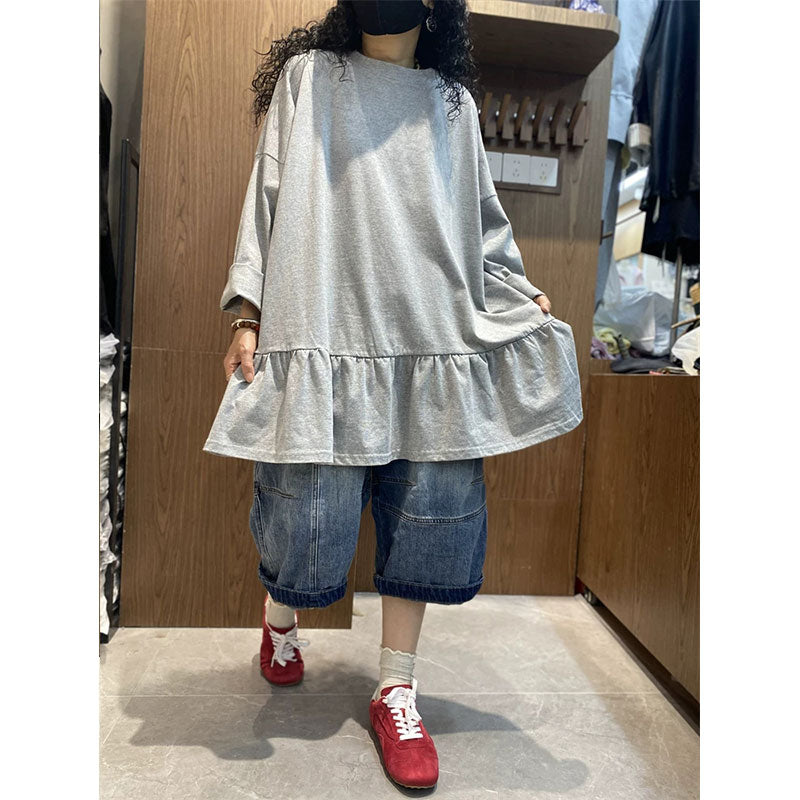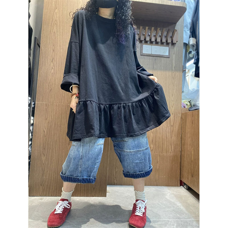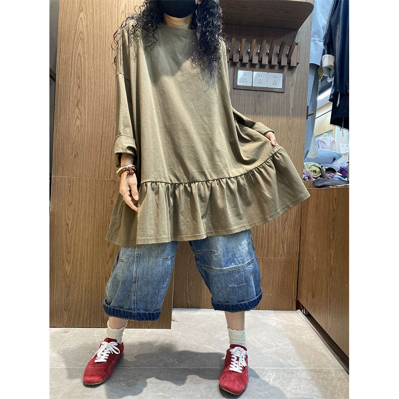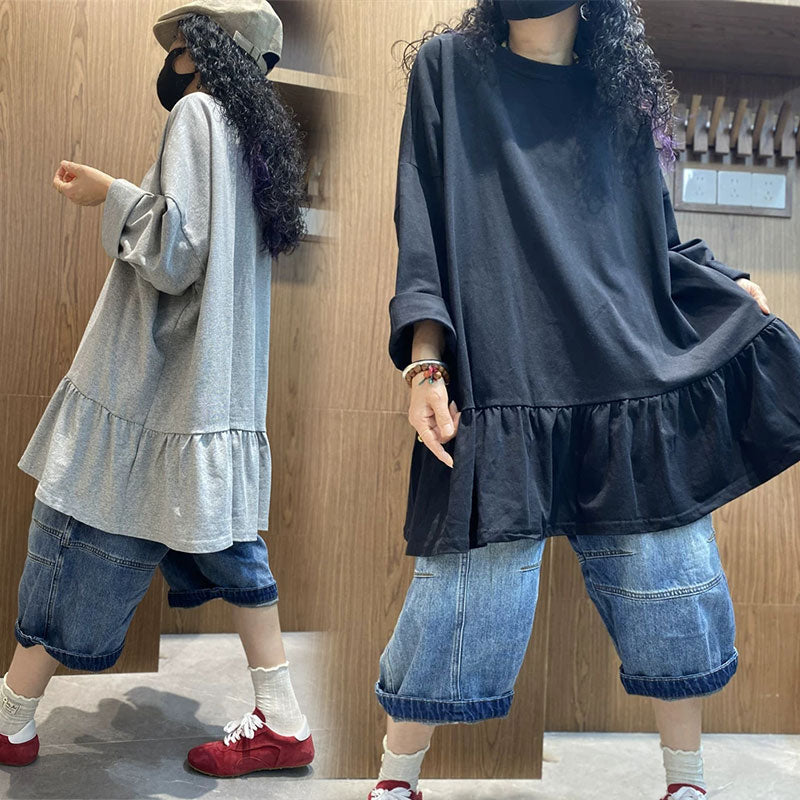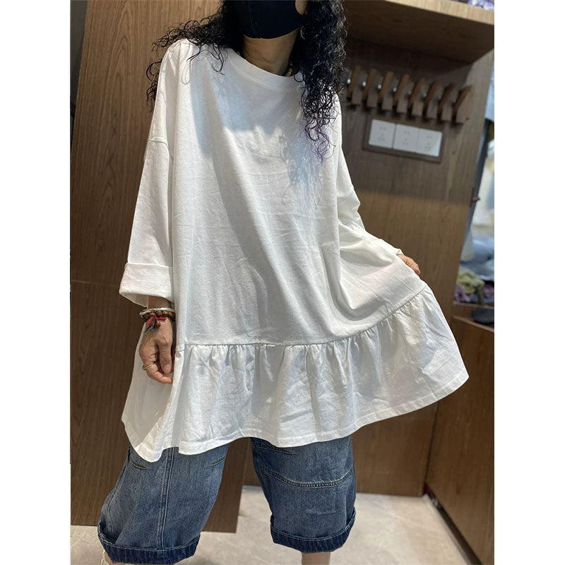 シンプルかわいい フレア裾 高品質 切替 ゆったりめ ロングTシャツ – Jojormaru