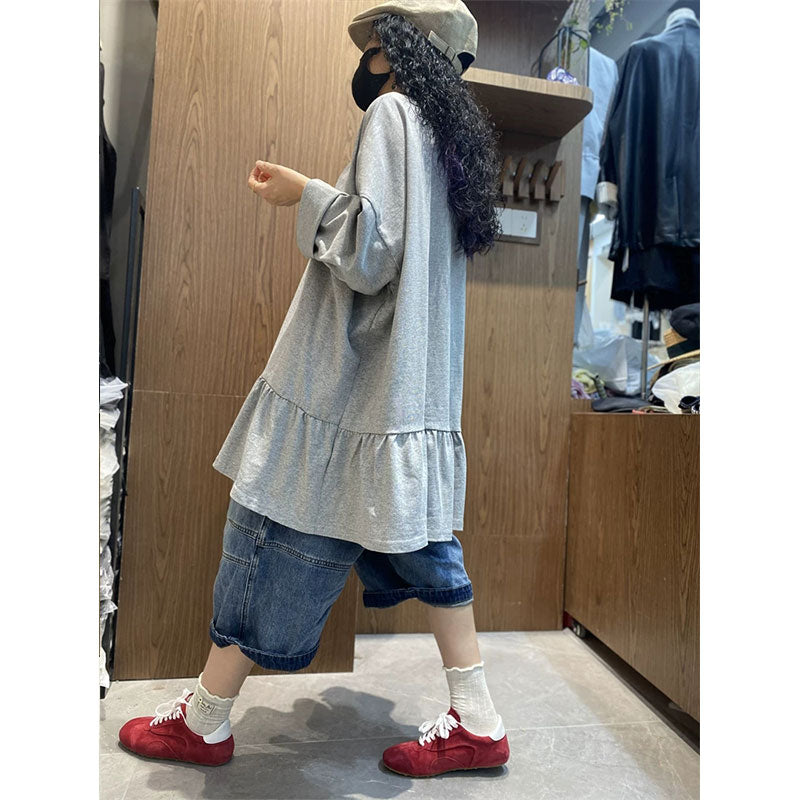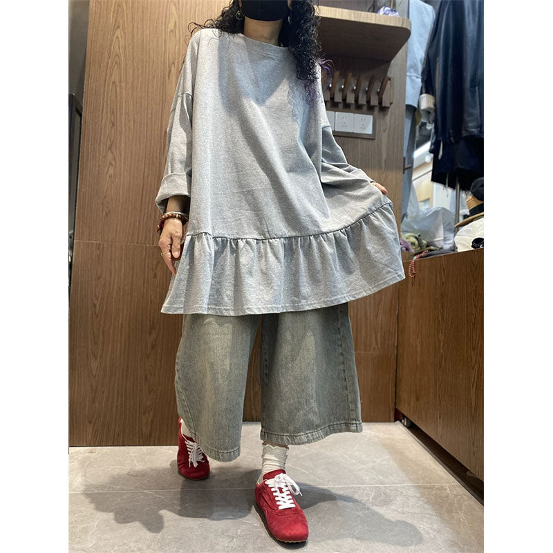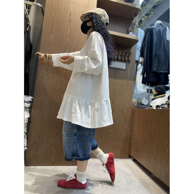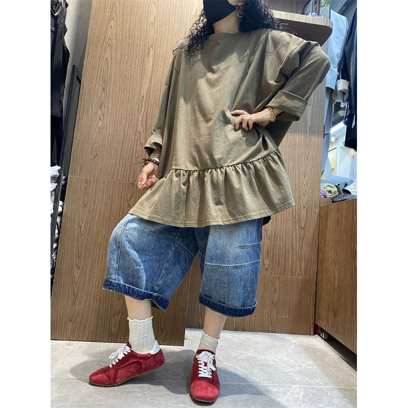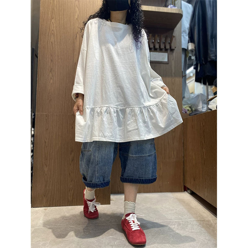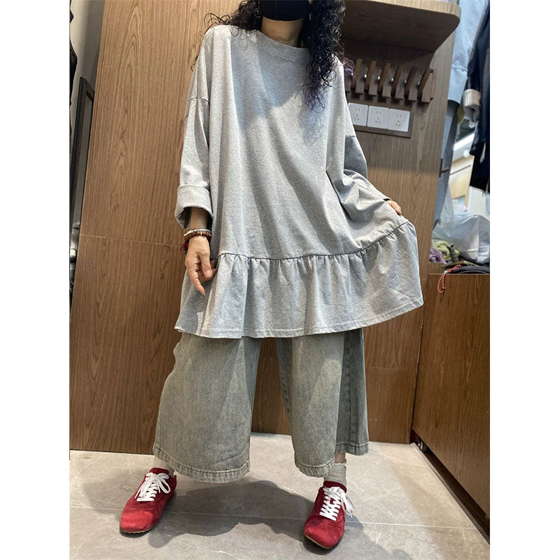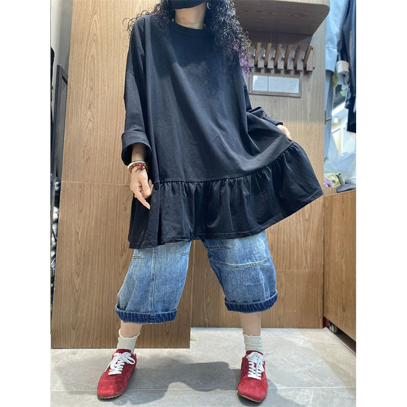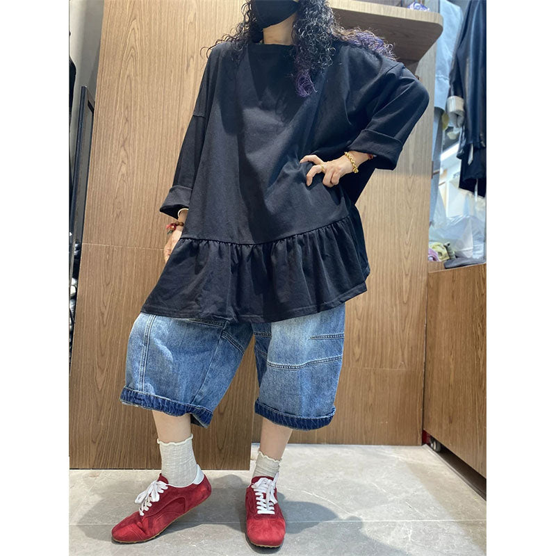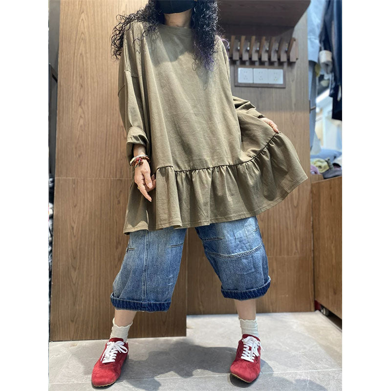 シンプルかわいい フレア裾 高品質 切替 ゆったりめ ロングTシャツ – Jojormaru