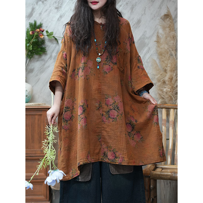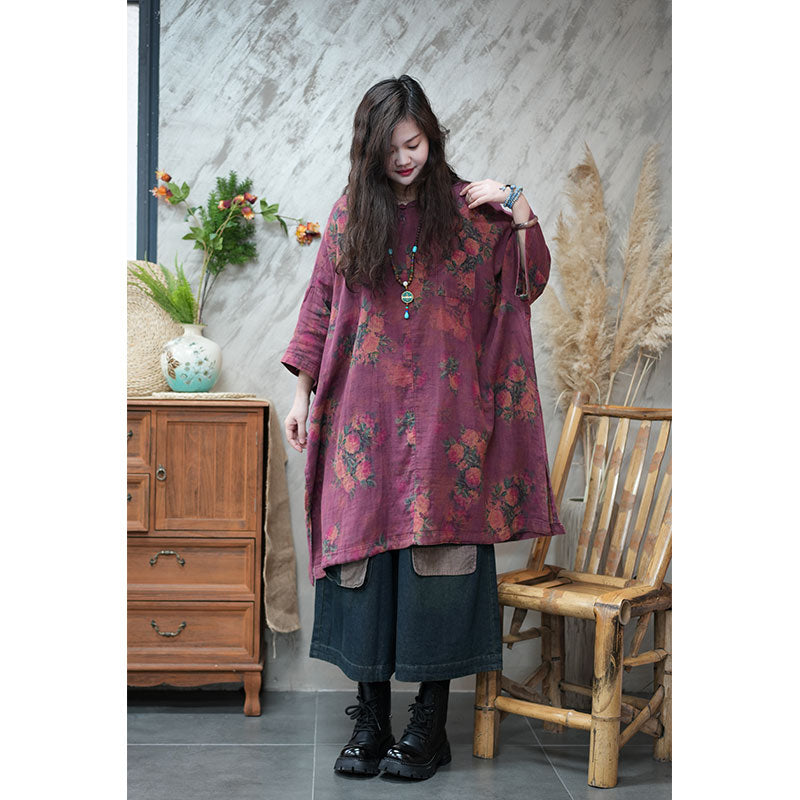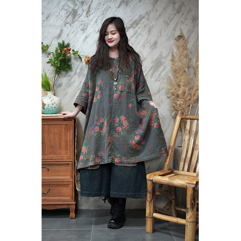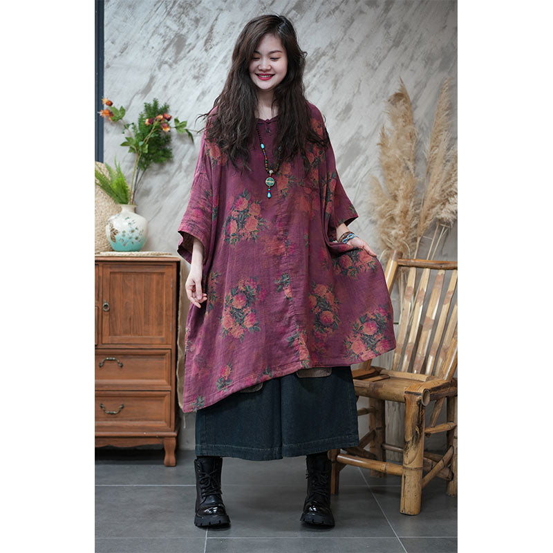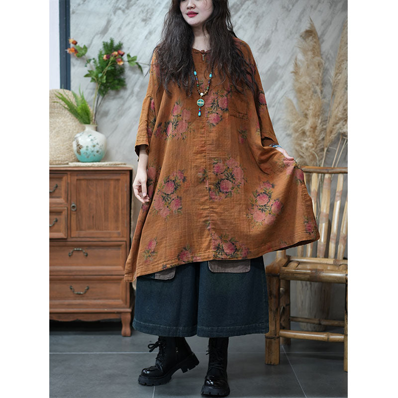 エスニック風 ボタニカル ゆったり チュニックワンピース リネン 大人かわいい ワンピース – Jojormaru
