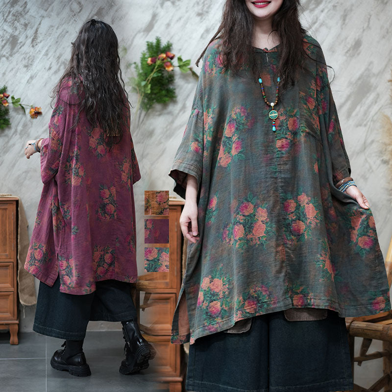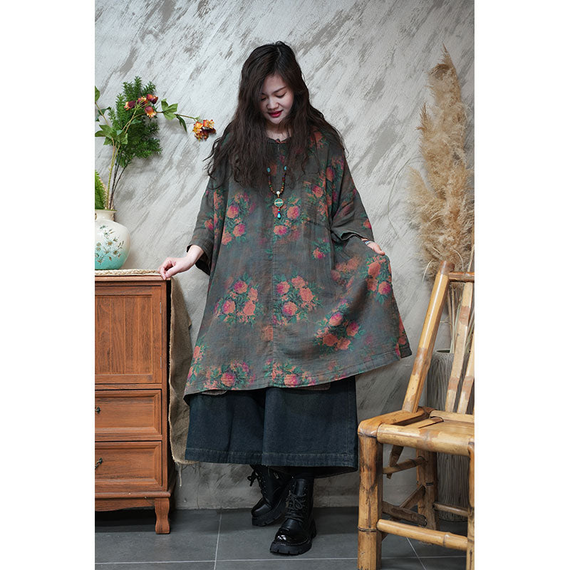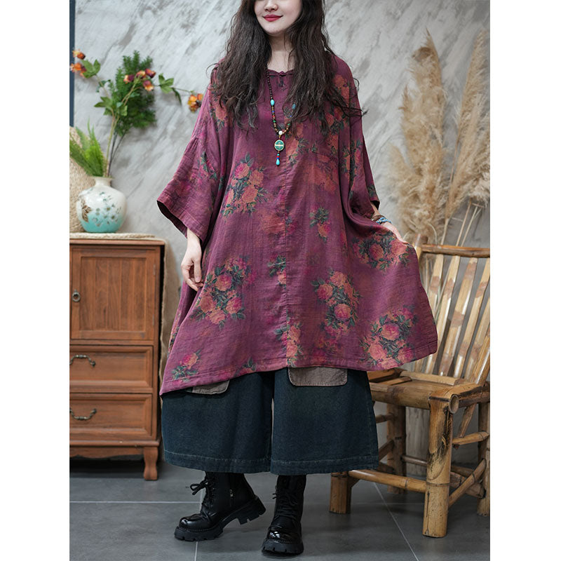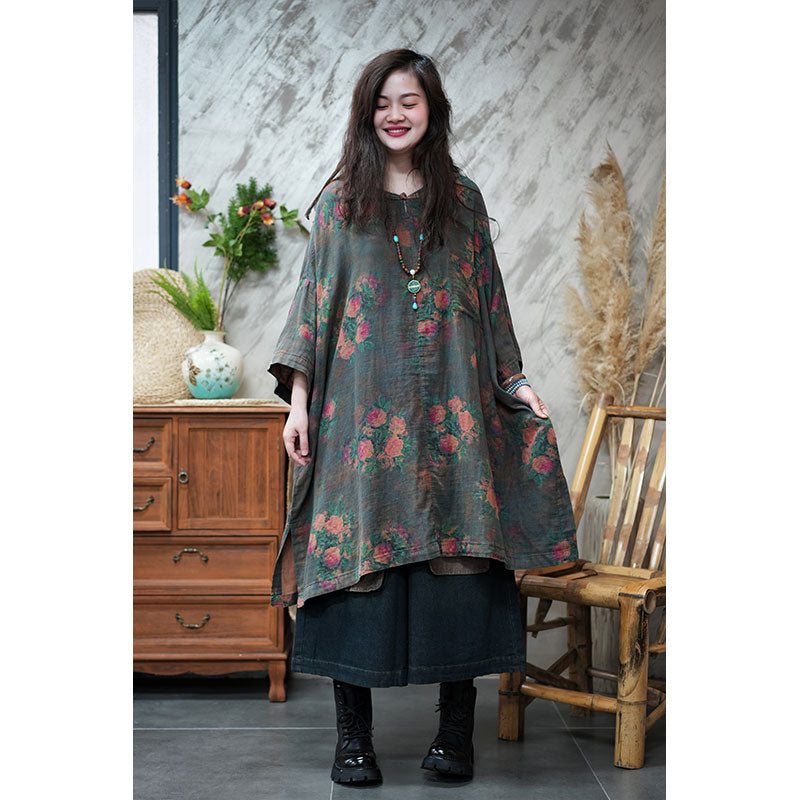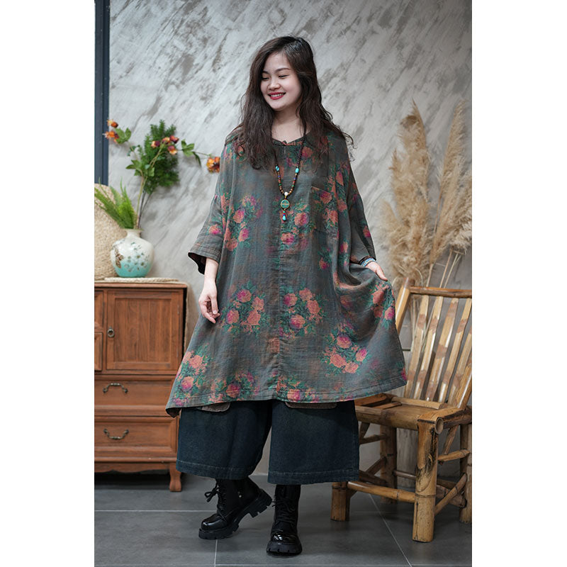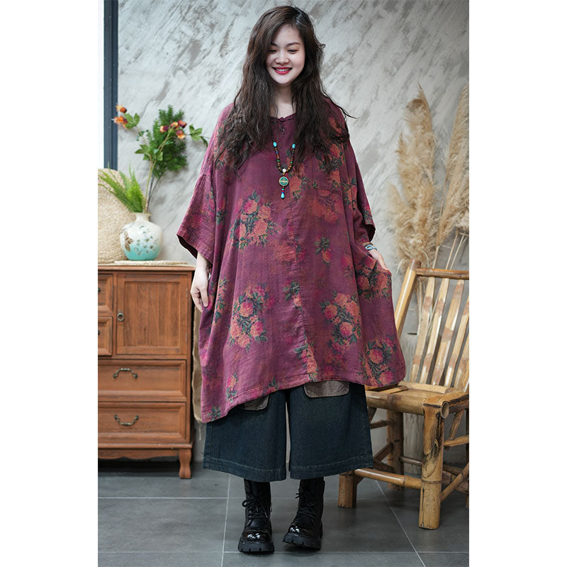 エスニック風 ボタニカル ゆったり チュニックワンピース リネン 大人かわいい ワンピース – Jojormaru