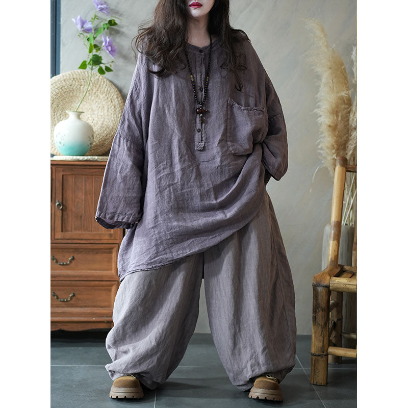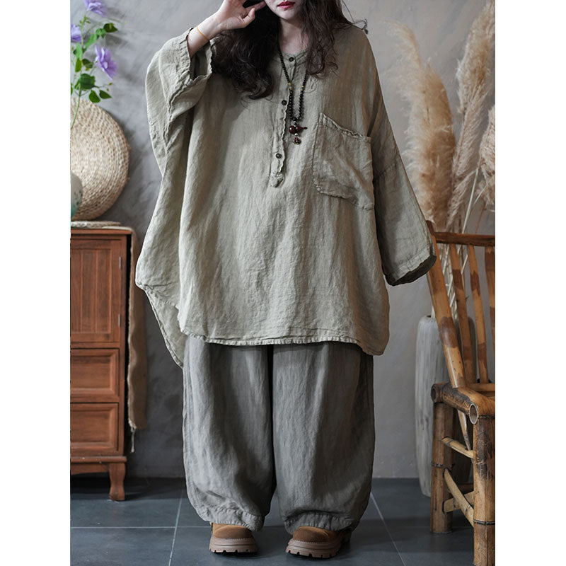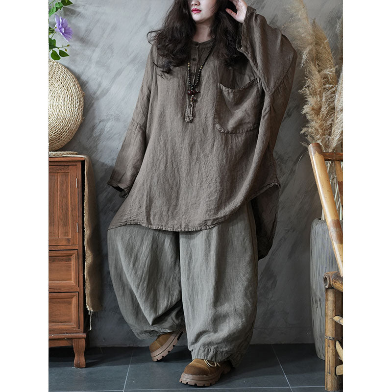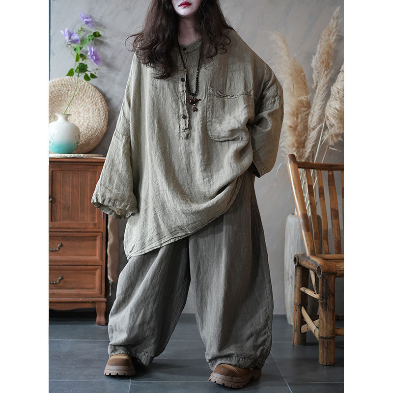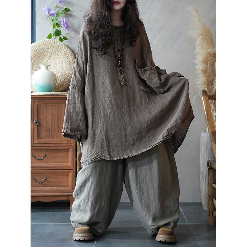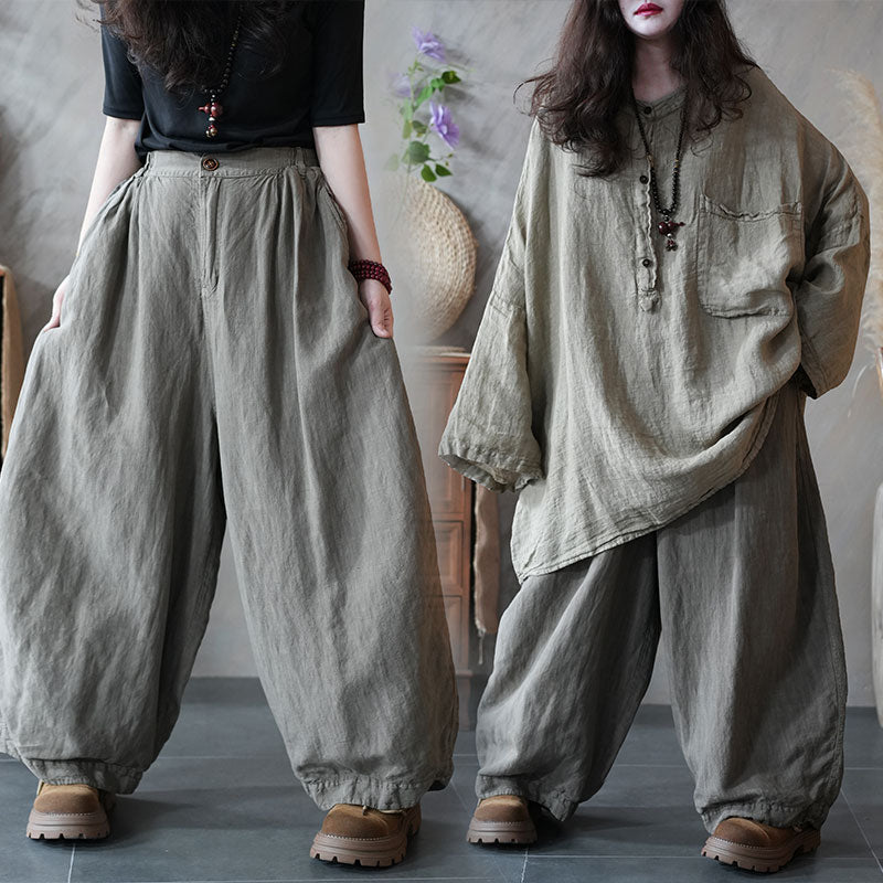 新作 上質リネン 楽ちん ナチュラル バルーンパンツ セットアップ  – Jojormaru