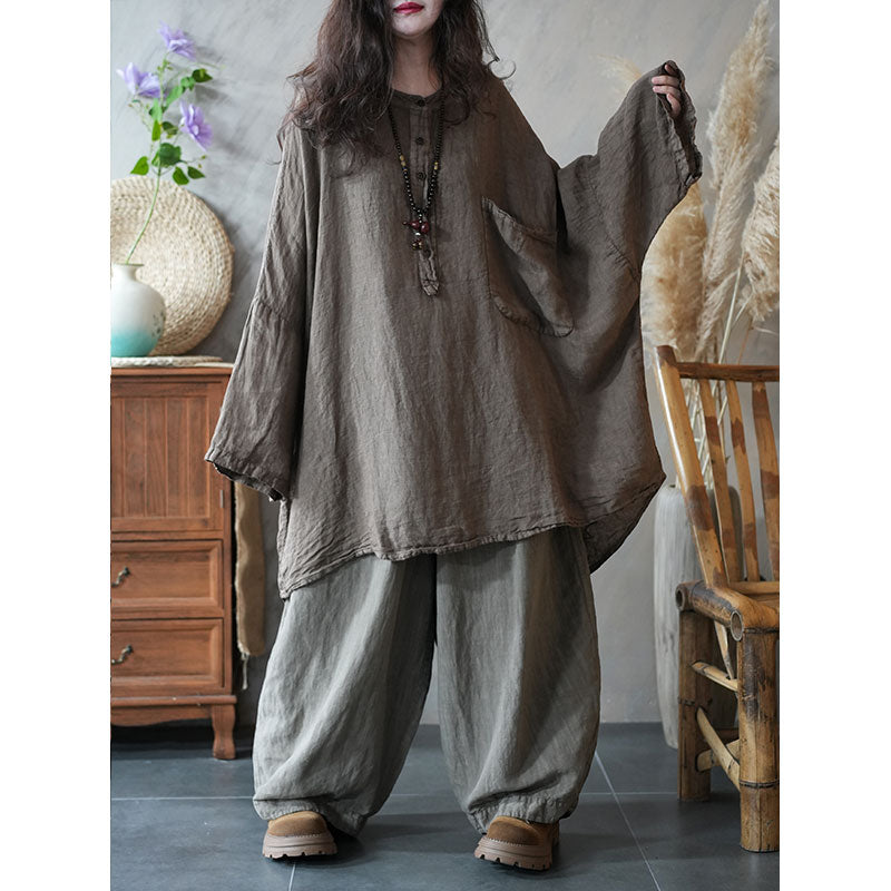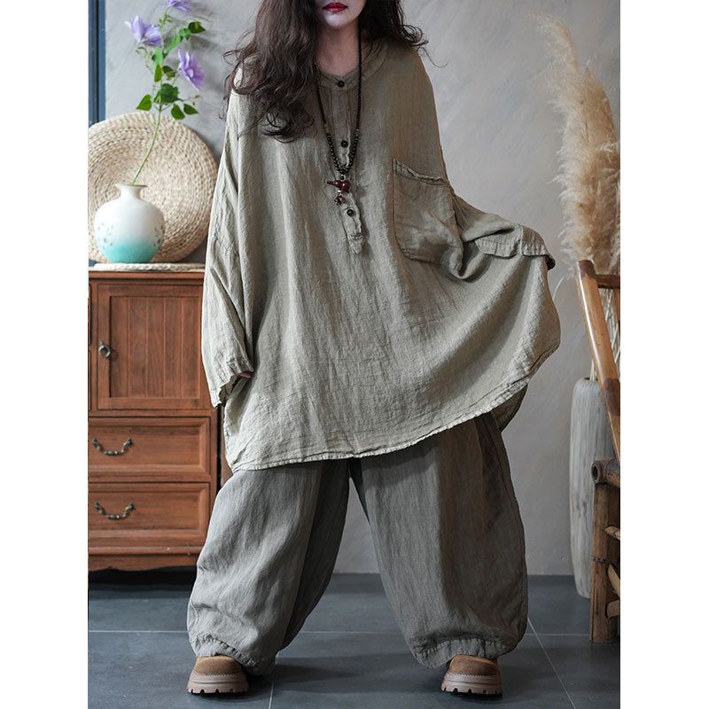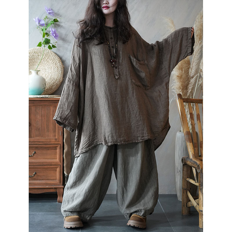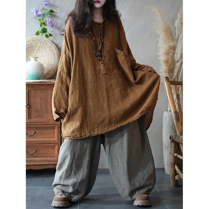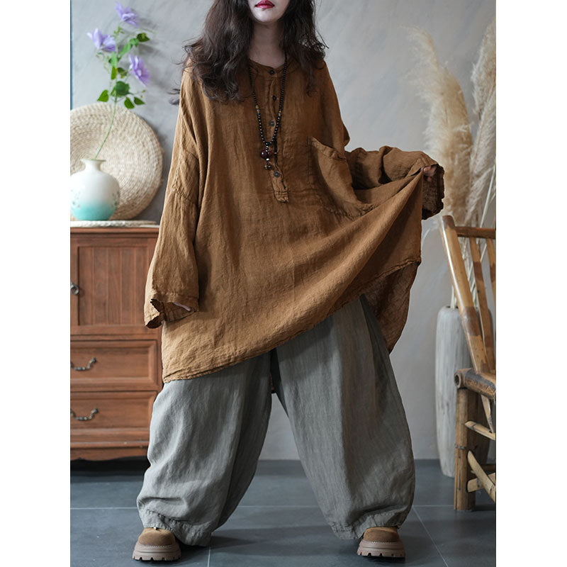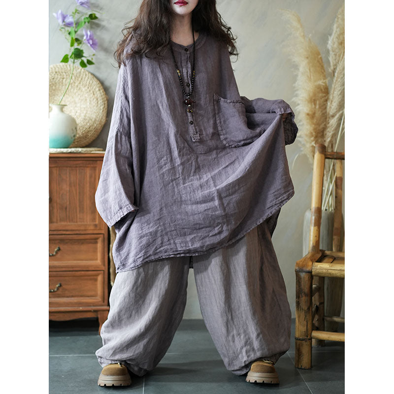 新作 上質リネン 楽ちん ナチュラル バルーンパンツ セットアップ  – Jojormaru