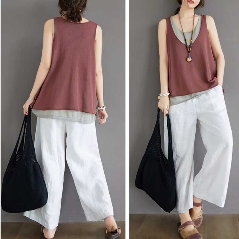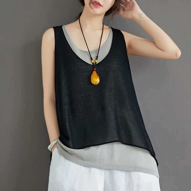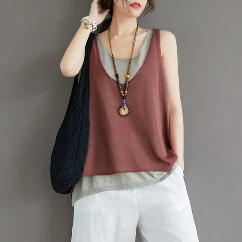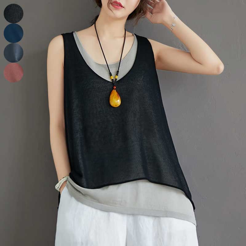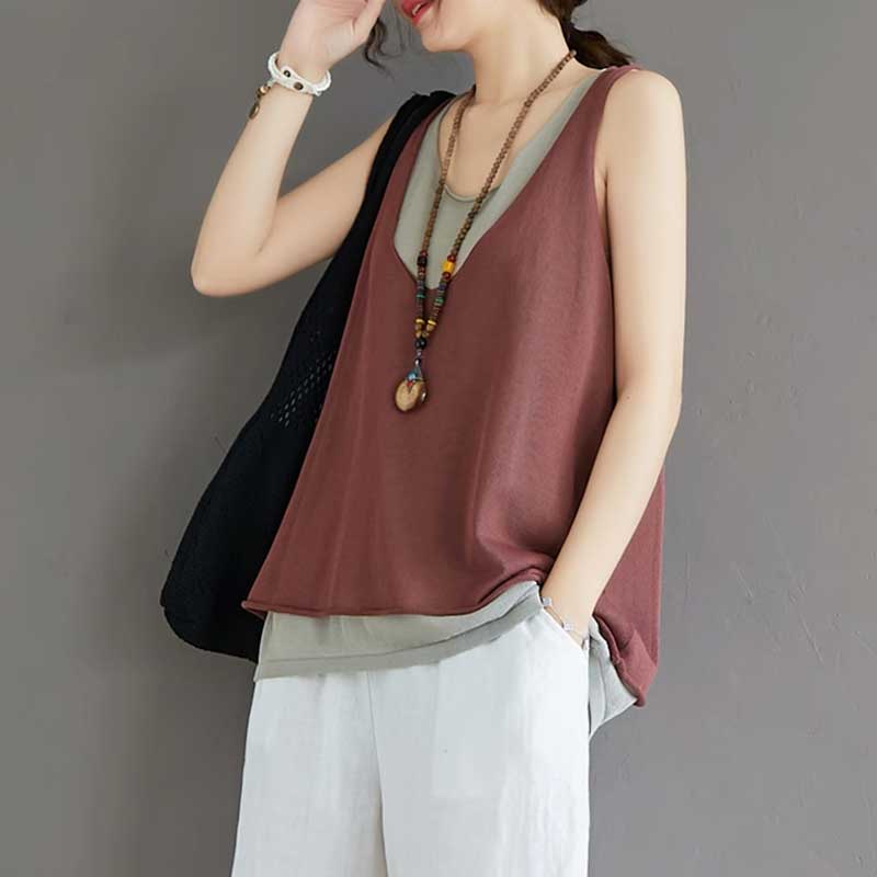 レイヤード風 Vネック 夏定番 かわいい タンクトップ – Jojormaru